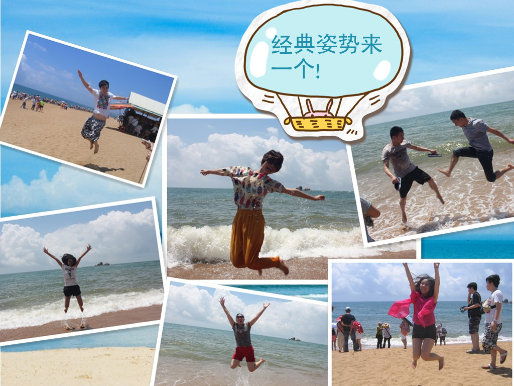 在海灘拍照,最不能少的動(dòng)作就是跳躍了,你可以選擇一人跳或雙人跳或多人跳,在這么多張照片中,我覺得福美的姿勢最有范了,你們覺得呢?